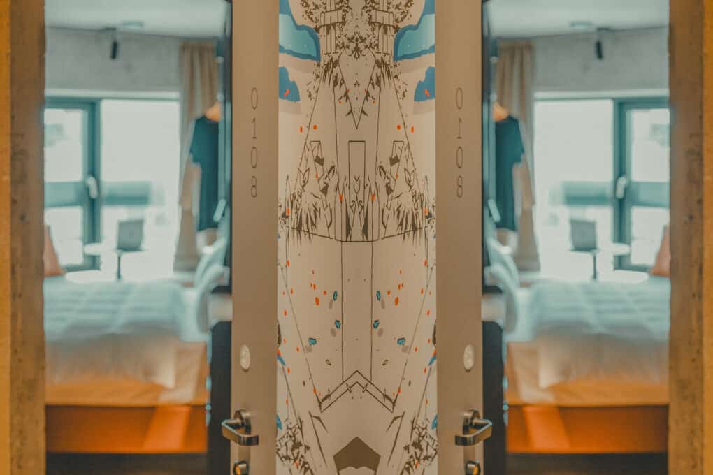 Was noch? Fernseher sind voll 90er. Deshalb, und um Ressourcen zu sparen, haben wir sie gar nicht erst an die Wände gebracht. Dafür gibt es superschnelles Internet zum Streamen eurer Lieblingsserien. Und weil auch eine Minibar dauerhaft Energie futtert, gibt es keine – aber 24/7 kostenlose Wasserflaschen in luut und lies für euch an der Barception.